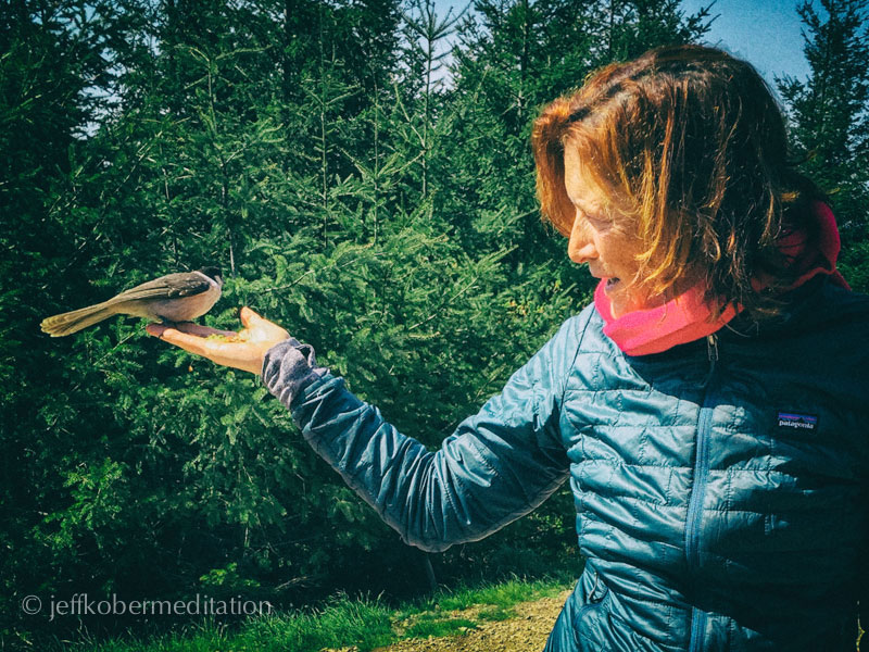 Adele and Camp Robber (Gray Jay), Tiger Mountain, WA